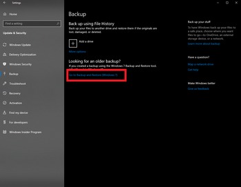 3. Select "Update & Security > Backup > Go to Backup and Restore (Windows 7)"