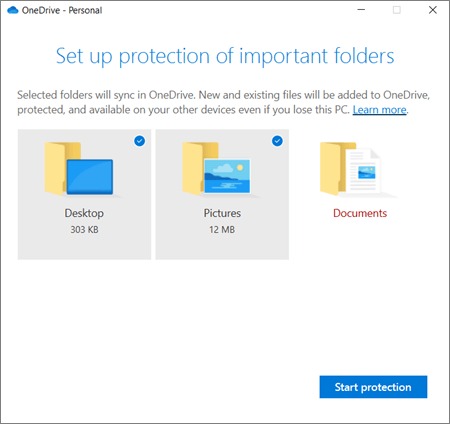 7. You will now see a "Set up protection of important folders" dialog, select all folders that have information you wish to back up