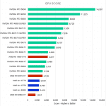 Bar chart of render score in the V-Ray benchmark using CUDA.