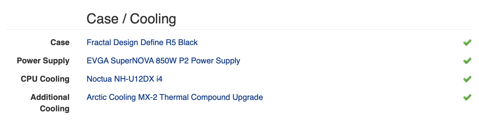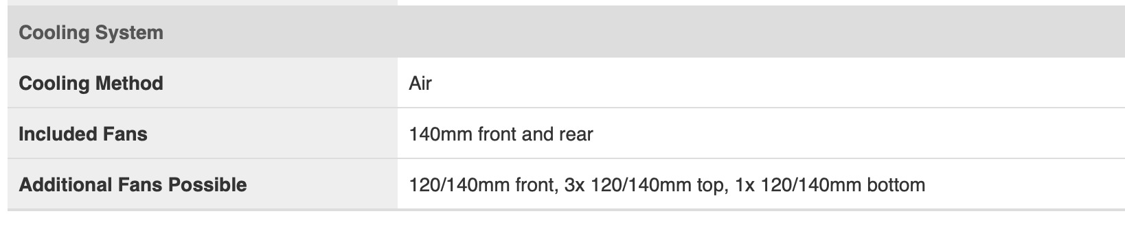 Selecting the Case "Fractal Design" in the example above will show you the details for your case and selecting "Tech Specs" then scrolling to the bottom will show you which sized fans your system uses.