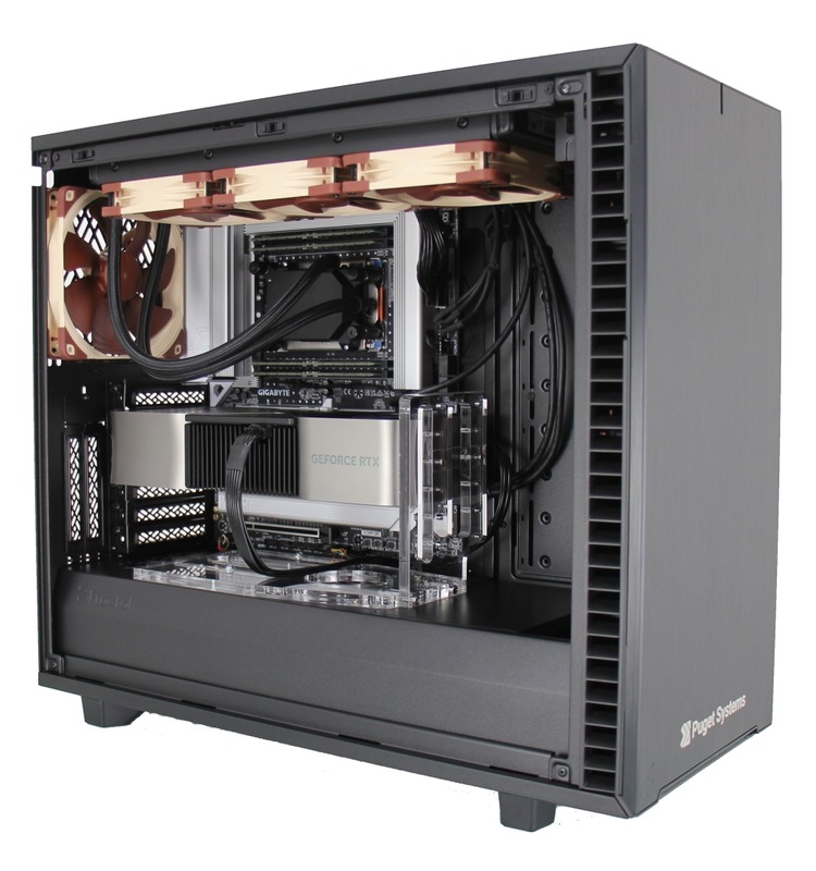 To get the best performance in this situation, you want a high core count processor – so AMD’s Threadripper™ line is a perfect fit. This workstation uses that family of CPUs and supports up to 512GB of memory. Technically their Threadripper™ PRO offers even more cores, but those are also much more expensive and require a larger, costlier system. The video card is much less important, though you still want a decent model in order to run whatever other 3D applications are being used alongside Keyshot. Since multiple video cards are not needed, though, this can all fit within a mid-tower chassis – saving space compared to our larger, GPU-rendering model.