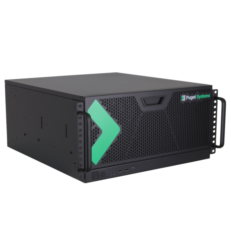 This 5U rackmount workstation features AMD’s Threadripper 9000 processors and supports dual NVIDIA GeForce RTX 5090 or RTX PRO 6000 Blackwell GPUs – but to run them has loud fans and requires a 200-240V circuit.