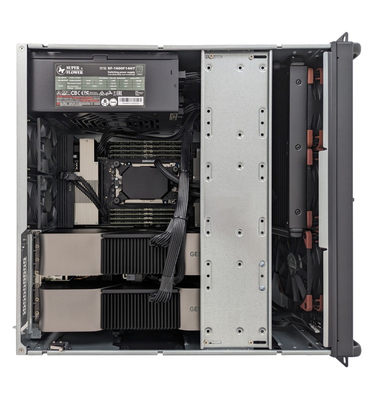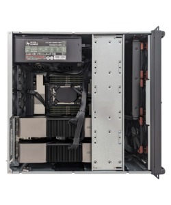 This rackmount workstation features AMD’s Threadripper™ PRO 9000WX processors, with up to 96 cores and 1TB of DDR5 memory, in a server-style chassis.