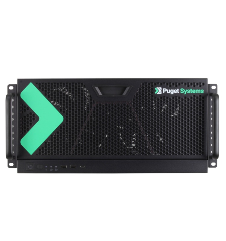 AMD’s Threadripper™ PRO 9000WX CPUs are ideal for applications that need both a lot of cores and high memory capacity / bandwidth. Moreover, there is enough room in this large 5U chassis for a pair of NVIDIA GeForce RTX 5090s or up to four RTX PRO Max-Q video cards. This system can also convert to a tower form factor if desired, but requires a 200-240V circuit. Depending on the GPUs selected, the noise level will also vary: