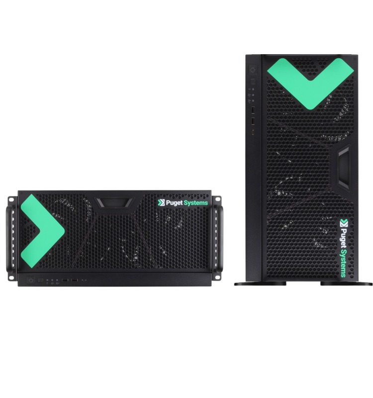 This 5U rackmount workstation features Intel’s Xeon® W-3500 processor platform, supports up to four video cards, and can convert to a tower workstation.