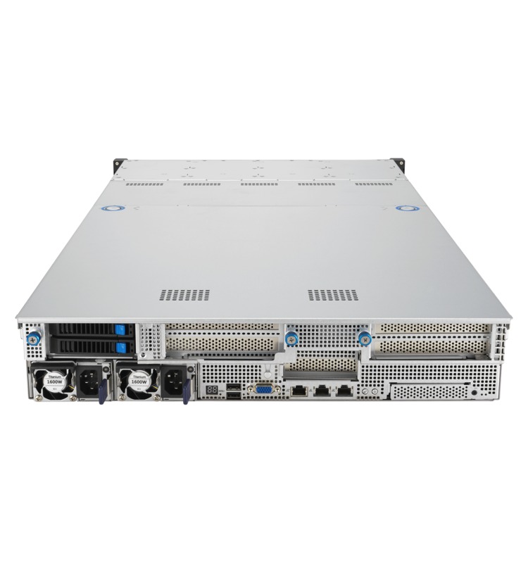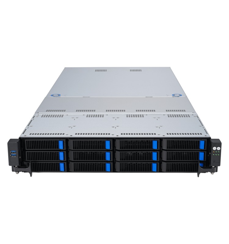 AMD’s EYPC™ line of processors are built for demanding server workloads, offering up to 160 cores with support for 12 DDR5 memory channels and 128 PCIe Gen 5 lanes. This server uses that processor to enable up to two dual-width GPUs and 12 3.5-inch SATA, SAS*, or NVMe drives in a compact 2U chassis. A pair of USB ports are available on the front, with redundant power supplies, more USB ports, and networking jacks located in the rear.