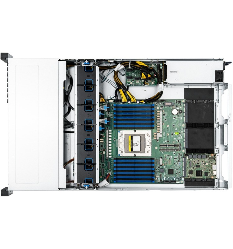 AMD’s EYPC™ line of processors are built for demanding server workloads, offering up to 192 cores with support for 12 DDR5 memory channels and 128 PCIe Gen 5 lanes. This server uses that processor to enable up to two dual-width GPUs and eight 2.5-inch U.2 NVMe drives in a compact 2U chassis. A pair of USB ports are available on the front, with redundant power supplies, more USB ports, and OCP 3.0 slots for network adapters located in the rear.