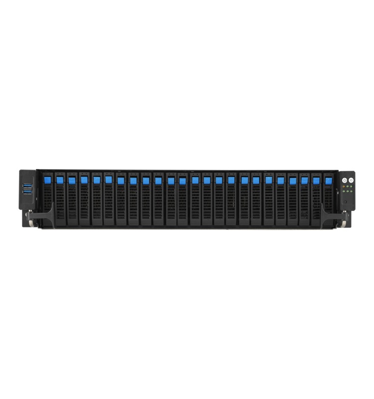 This software-defined storage server runs OSNEXUS QuantaStor and supports up to twenty-four 2.5-inch hot-swap drive bays in a slim 2U rackmount form factor.