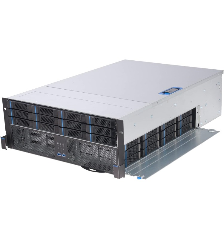 Powered by OSNEXUS QuantaStor, running on AMD’s EYPC 8004 line of processors, this server provides a software-defined storage system with up to thirty-six 3.5-inch hot-swap drive bays in a large 4U chassis. Mirrored OS and metadata offload drives are also present, as well as redundant power supplies and various networking options.