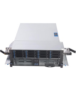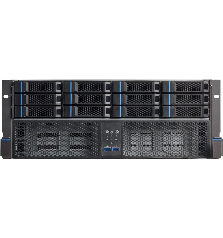 This software-defined storage server runs OSNEXUS QuantaStor and supports up to thirty-six 3.5-inch hot-swap drive bays in a large 4U rackmount form factor.